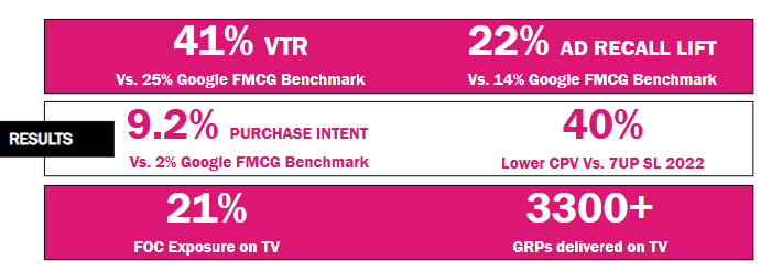 Complementing our digital strategy, we orchestrated a high-impact TV launch with a substantial roadblock across 21 channels. This holistic approach ensured that 7UP Strawberry Lemonade creates an impact on both digital and TV.
